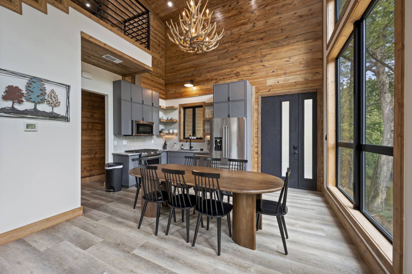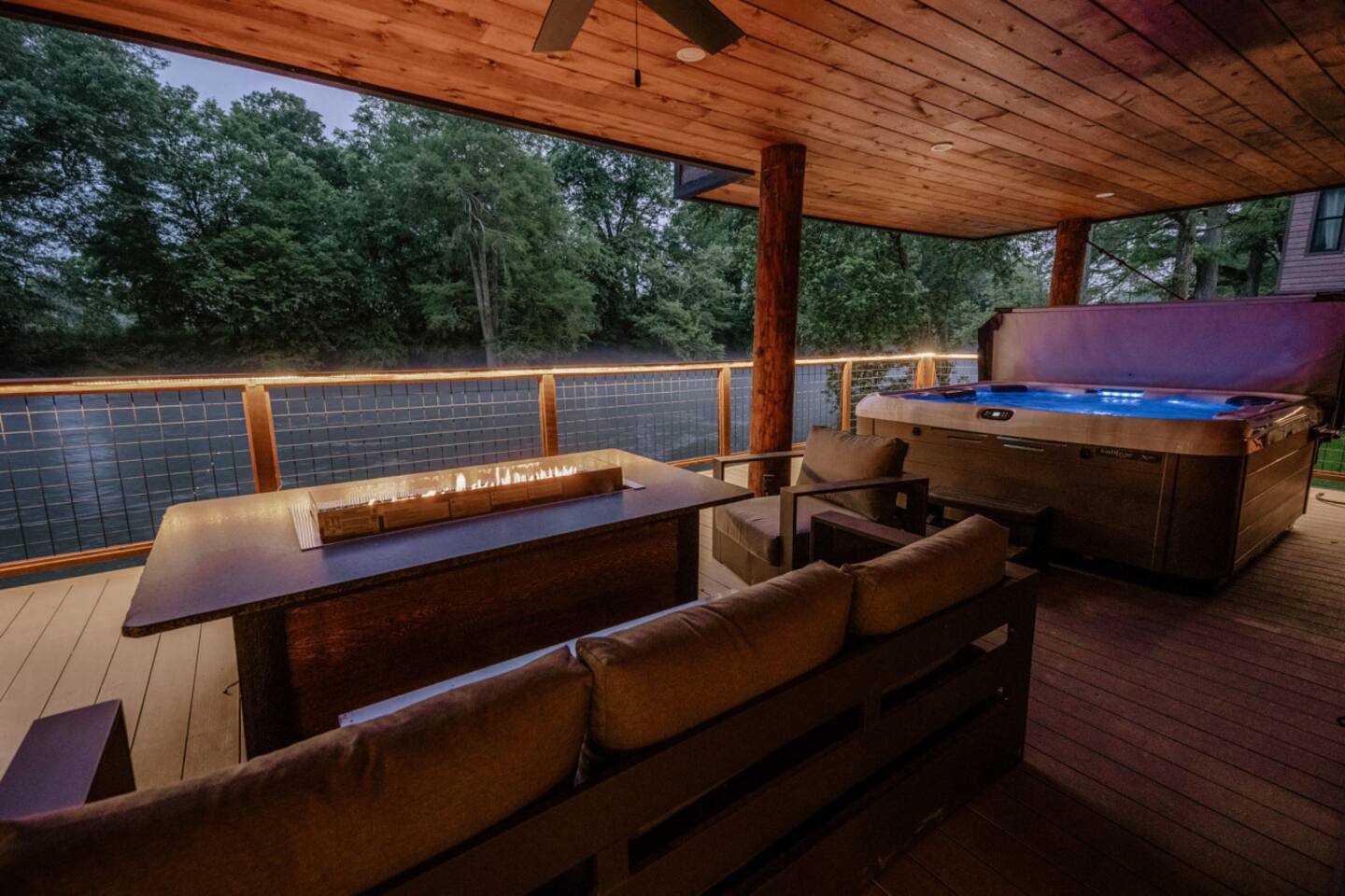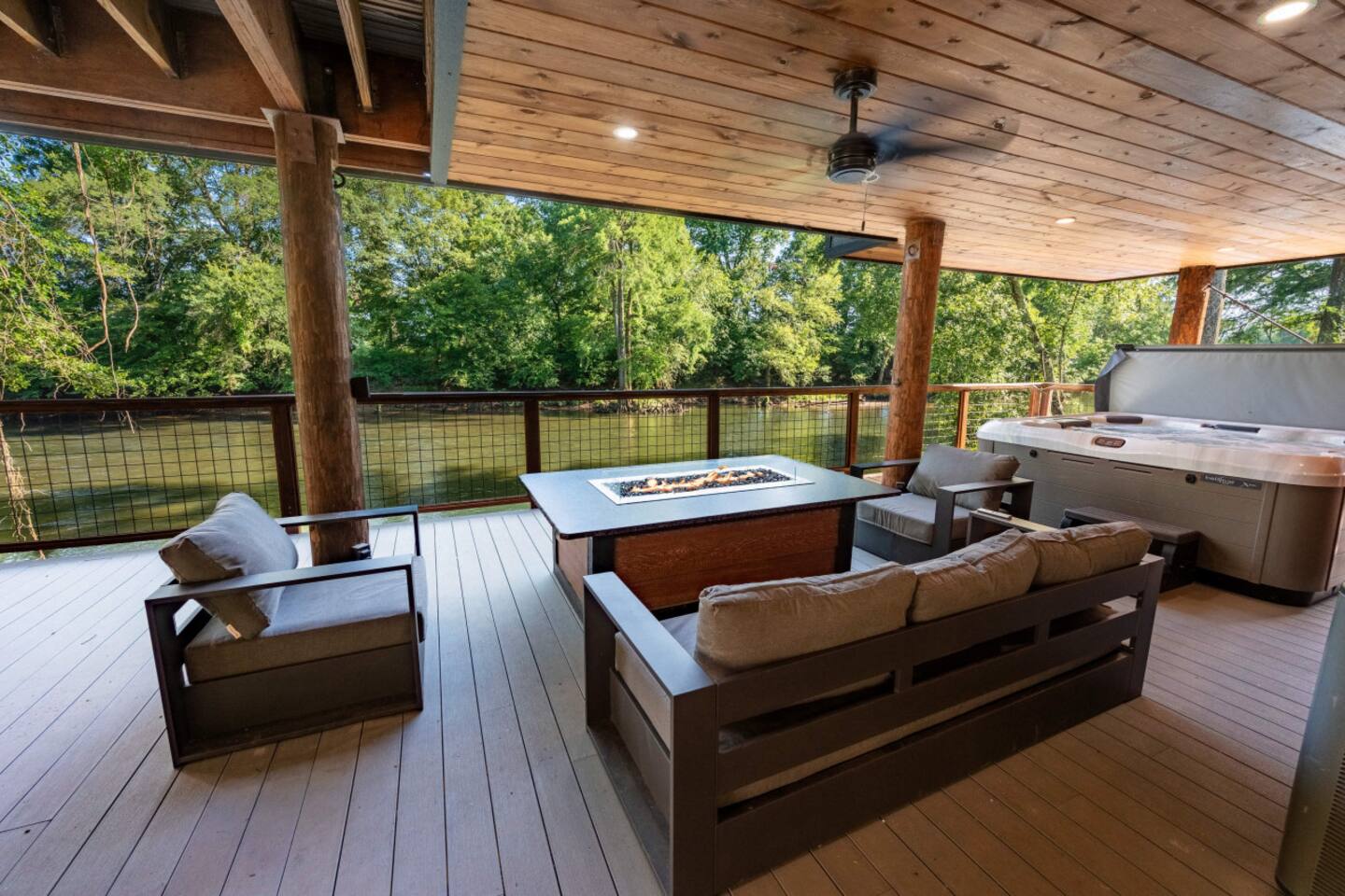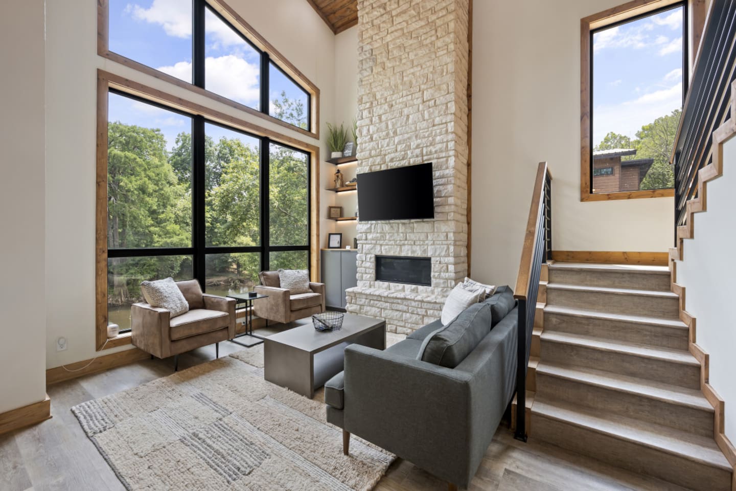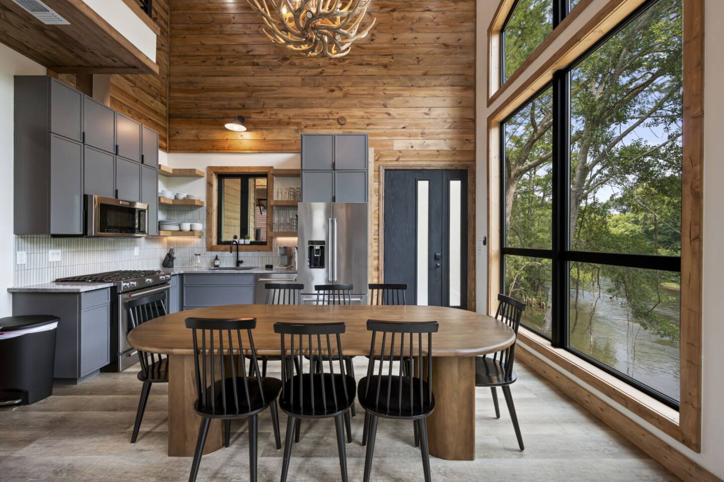 At Serenity Shores, you can expect to find generously sized rooms, a hot tub overlooking the river, TVs in each room, a washer and dryer, air conditioning and heating systems, expansive windows, as well as a patio featuring fire table, and many other amenities to make your stay even more comfortable and enjoyable.
