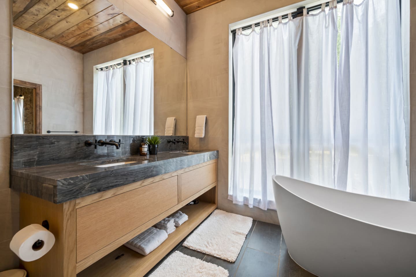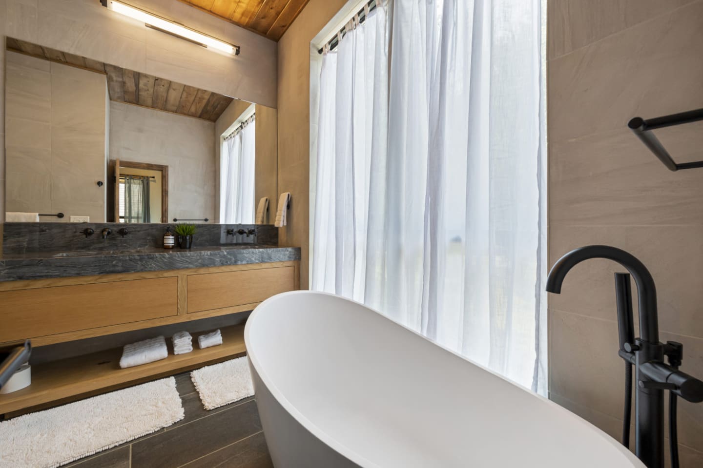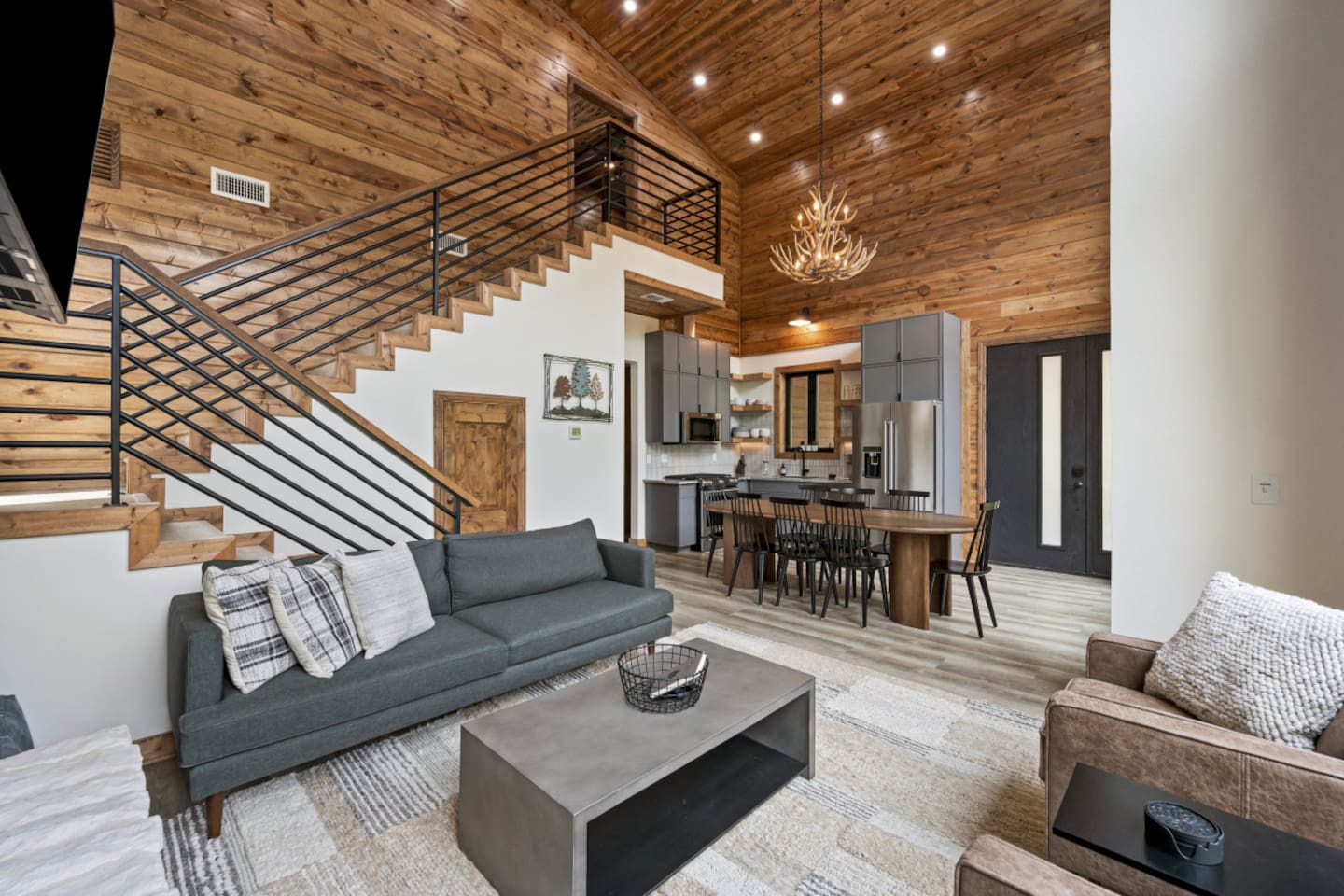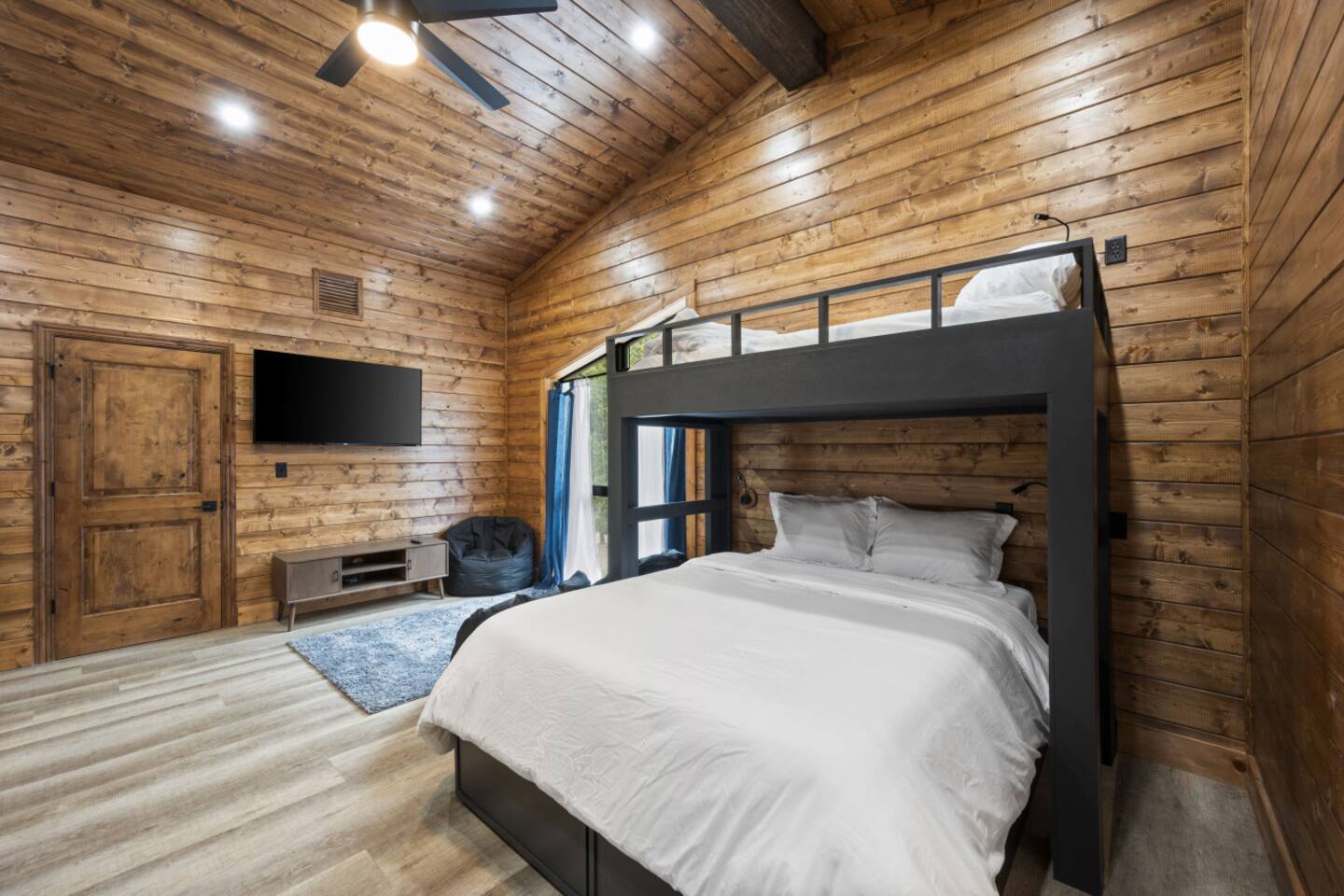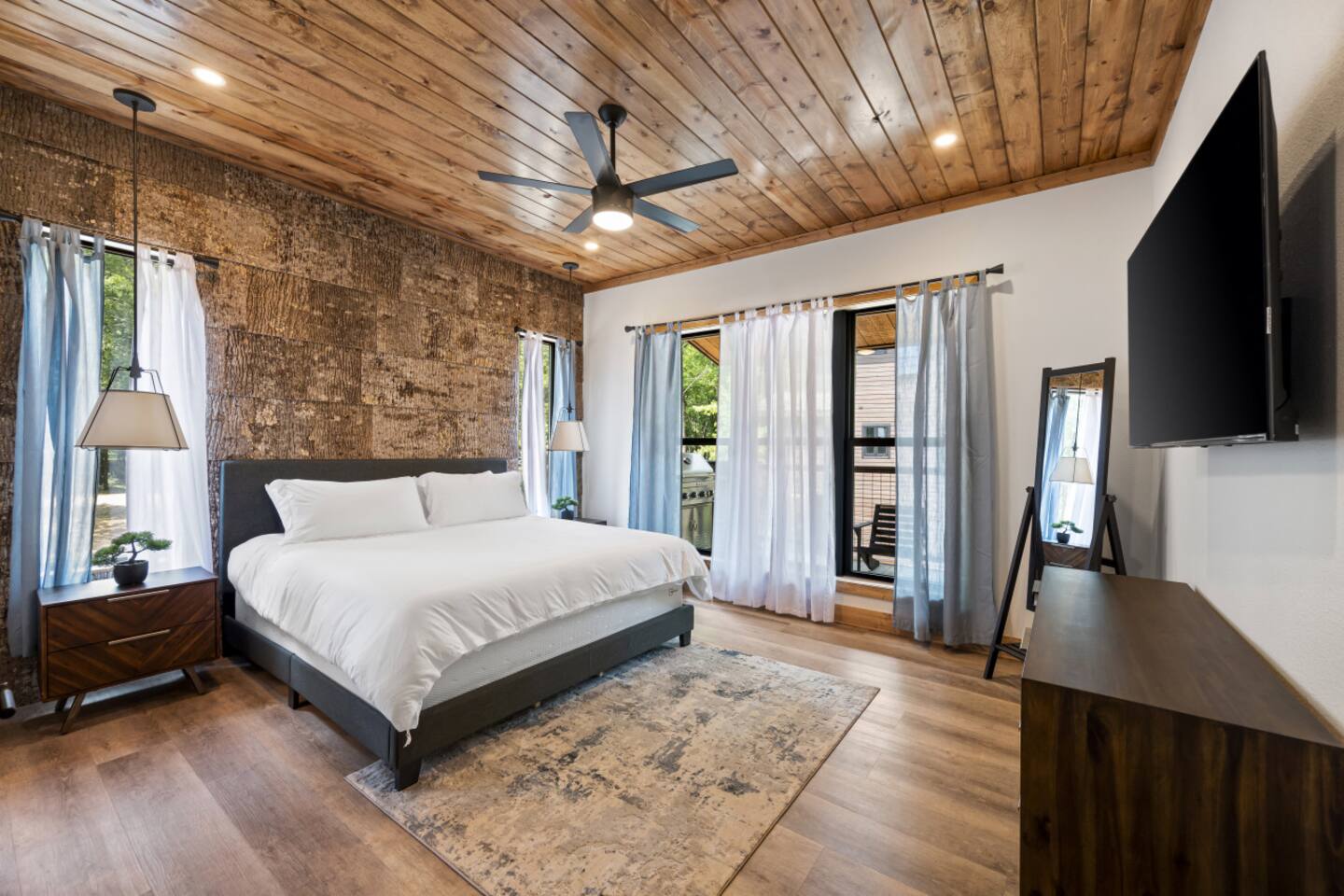 At Serenity Shores, you can expect to find generously sized rooms, a hot tub overlooking the river, TVs in each room, a washer and dryer, air conditioning and heating systems, expansive windows, as well as a patio featuring fire table, and many other amenities to make your stay even more comfortable and enjoyable.