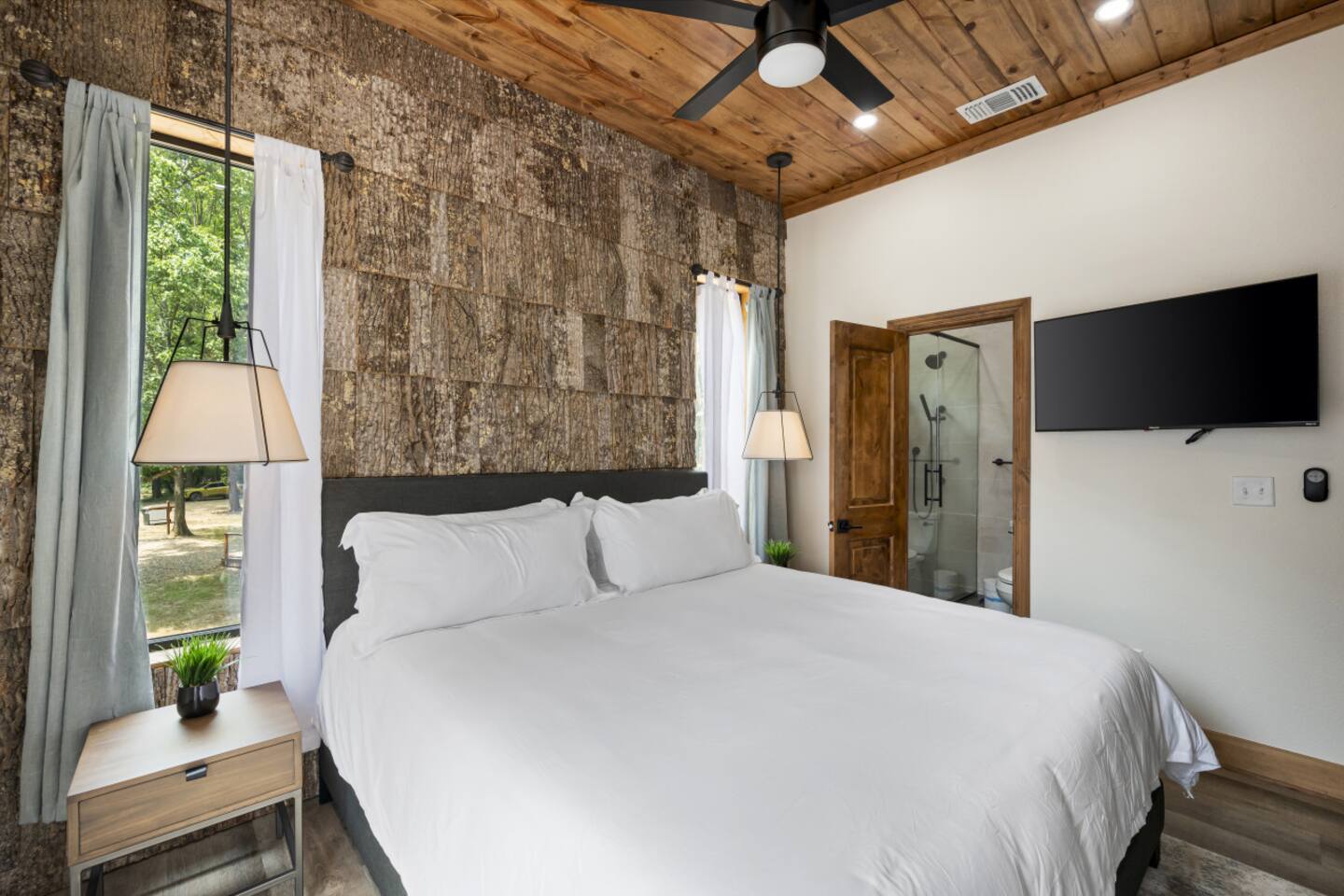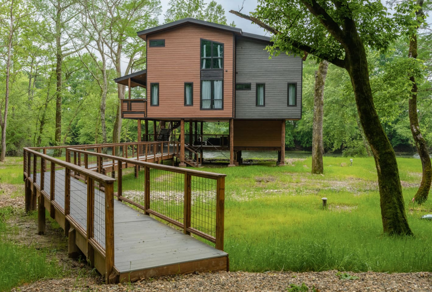 This property is situated on the Mtn Fork River, to the southeast of Broken Bow. Its location right by the river sets it apart from others in the area. You'll find yourself removed from the hustle and bustle of Hochatown, yet still conveniently close to all the attractions and activities available at Beavers Bend and Broken Bow Lake.